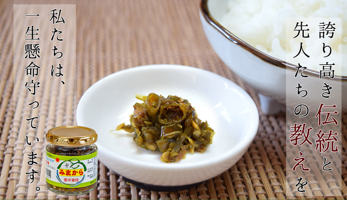 昔からこの地で栽培されていた良質の「みまから唐辛子」を原材料にし,自然と手作りにこだわり
